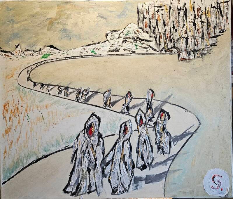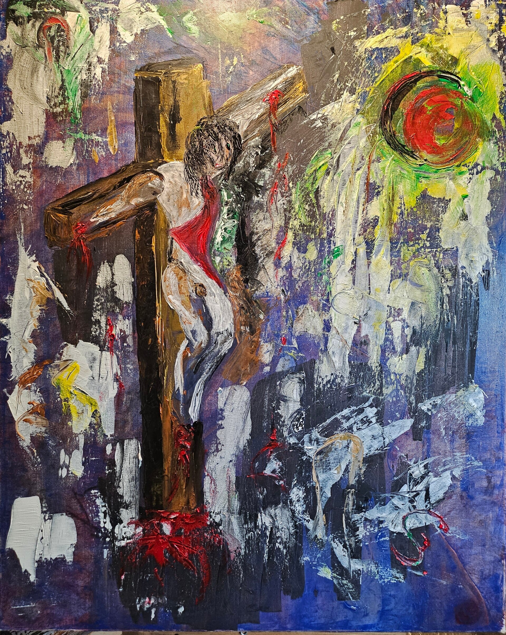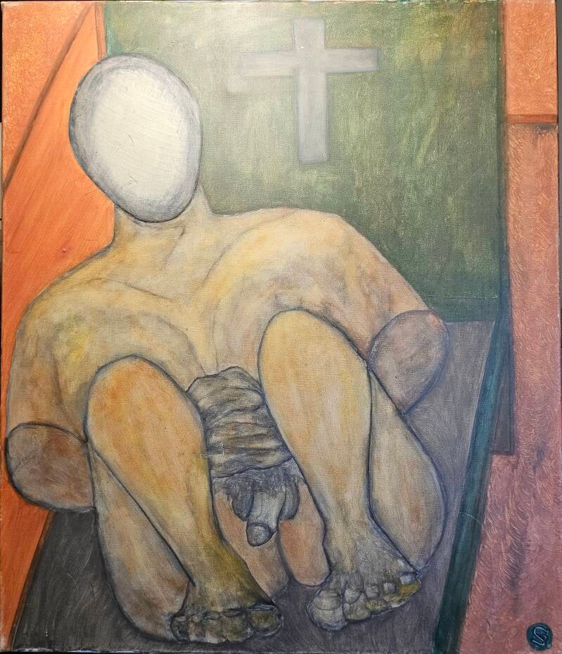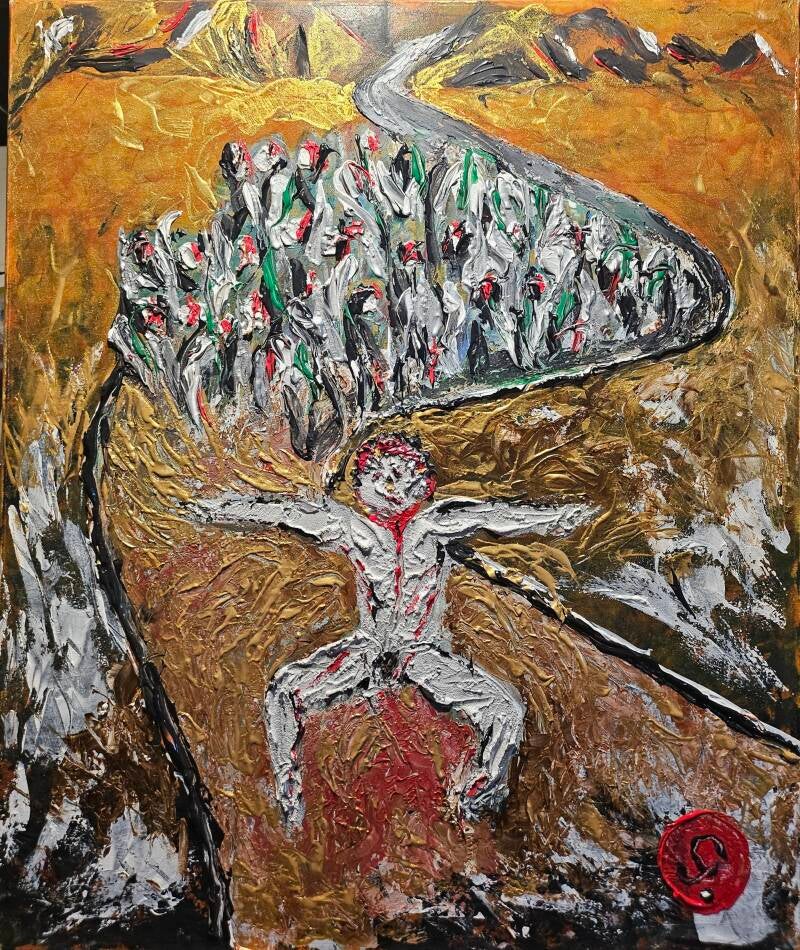 Ma peinture n’est ni esthétique ni théorique — elle est vécue, incarnée, urgente. Chaque toile est un fragment de silence hurlé, un dialogue entre la chair et l’ombre. Corps sans visages, crucifixions laïques, figures