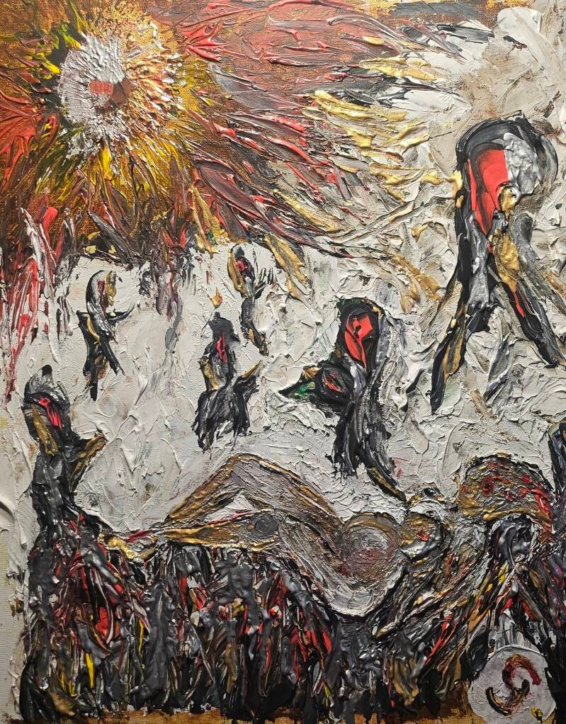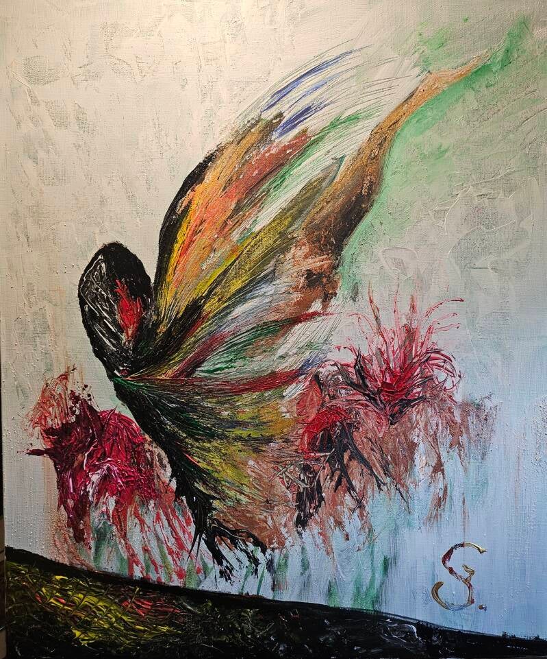 Je peins pour ne pas me taire. Autodidacte, je mêle expressionnisme, art brut et surréalisme lyrique dans un geste instinctif où la matière devient souffle. Les pigments, les empreintes, les textures sont mes cicatrices.