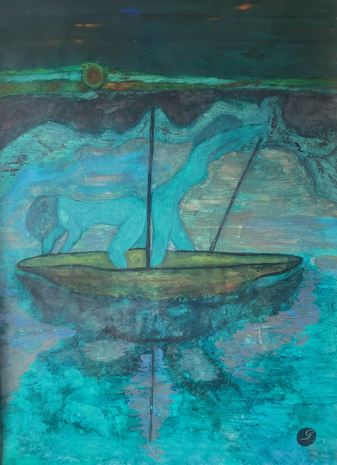 Dans Nymphes, j’évoque une féminité libre et fluide, entre l’eau et le ciel. Les figures y dansent dans une barque suspendue, métaphore de l’âme flottant entre conscience et inconscient. À travers cette œuvre, je cherche à célébrer le mouvement intérieur du féminin, sa légèreté, sa profondeur et sa part d’invisible. C’est une fresque poétique et symbolique, un chant visuel dédié à la fluidité de l’être.