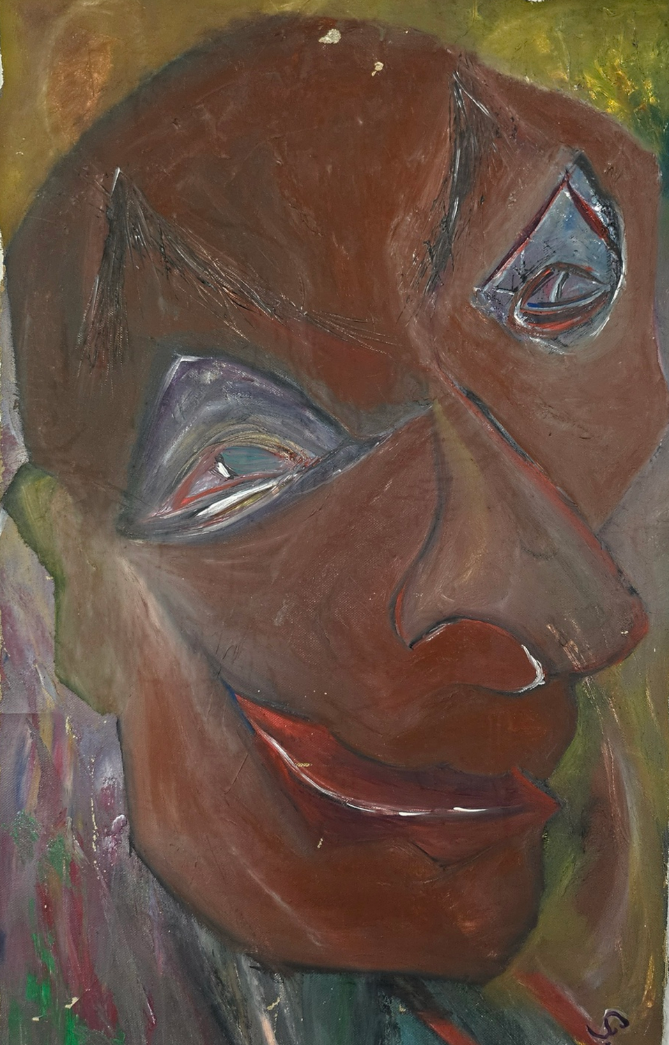 Dans Esprit, je peins un autoportrait intérieur. Le visage déformé traduit mes doutes, mes réflexions, la complexité de ma propre conscience. C’est une figure mentale, suspendue entre lucidité et retrait.